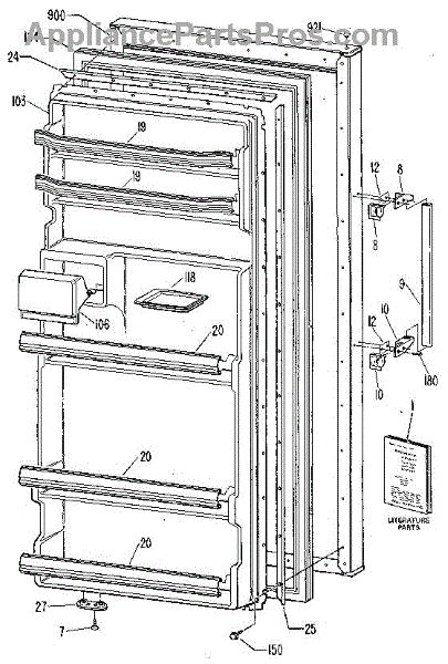 Parts for Kenmore 363.8381081 (3638381081, 363 8381081): Door Parts