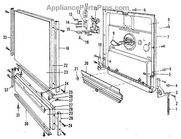 Left-side door hinge for your dishwasher. Mounts to the cabinet and door panel. Replace if cracked, broken, or if the door sags or won't stay open properly.