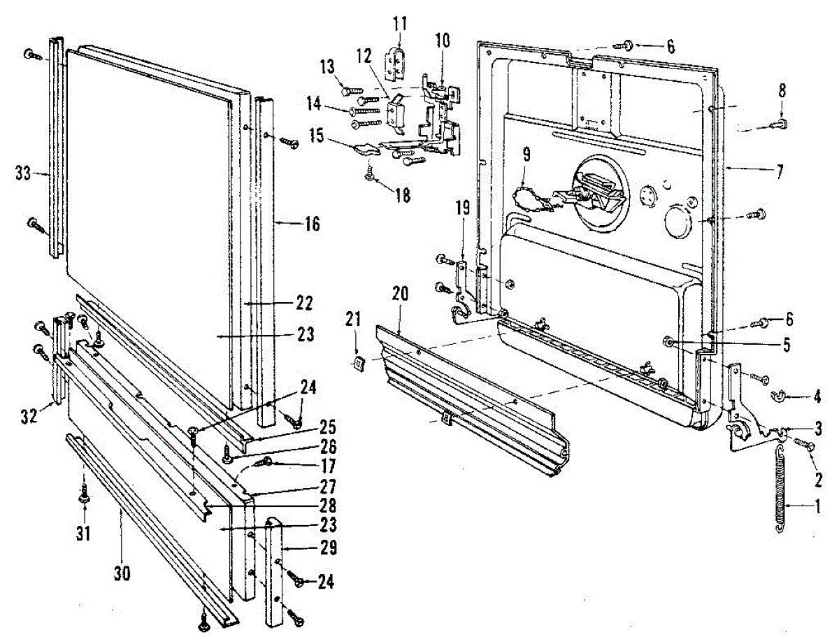 Right side door hinge for dishwashers. Replaces cracked, broken, or worn hinges that prevent the door from opening and closing smoothly or securely.
