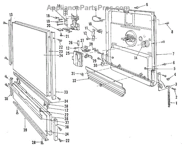 Right side door hinge for dishwashers. Replaces cracked, broken, or worn hinges that prevent the door from opening and closing smoothly or securely.