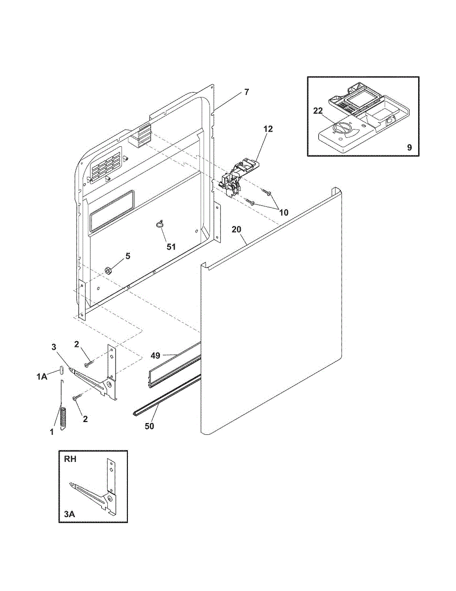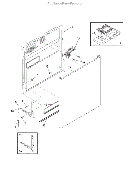 The Frigidaire handle and latch assembly is an OEM replacement part responsible for securing and latching the dishwasher door when it is closed for a wash cycle. This part is typically located on the front panel of the dishwasher, near the top of the door. It ensures that the dishwasher door remains securely closed during operation, preventing water and steam from escaping the interior.