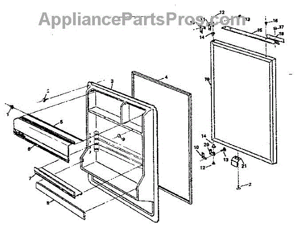 Parts for Kenmore 757.6699612 (7576699612, 757 6699612): Door Parts