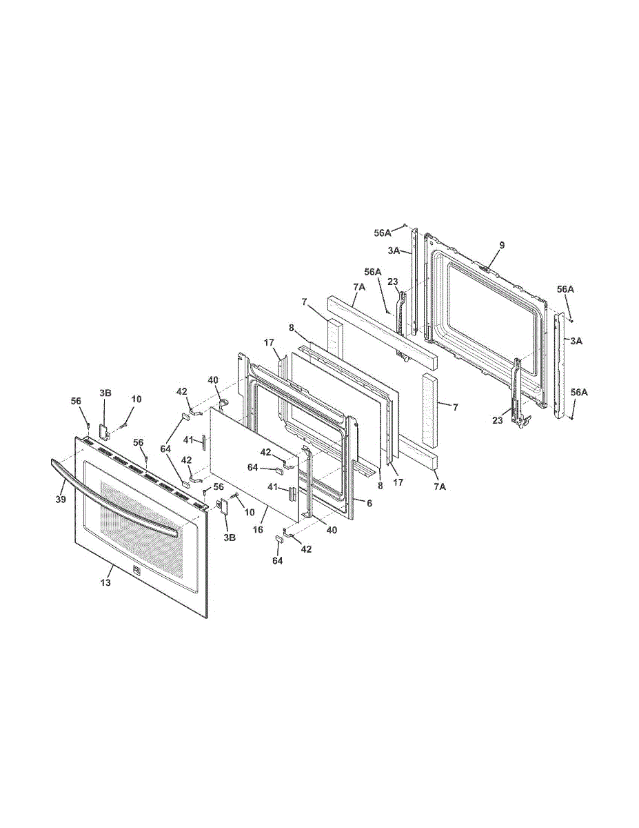 Replacement glass panel for the oven door. It restores a clear viewing window and helps maintain proper insulation when the original glass is cracked, shattered, or discolored.