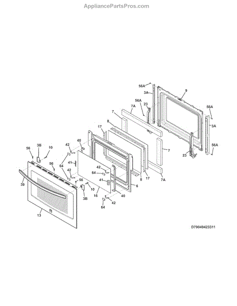Replacement glass panel for the oven door. It restores a clear viewing window and helps maintain proper insulation when the original glass is cracked, shattered, or discolored.