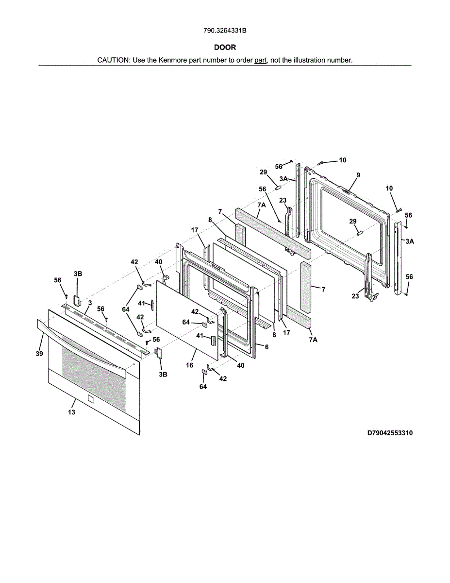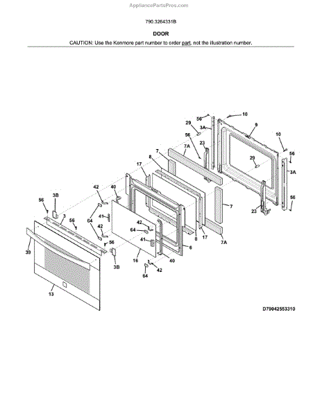 Inner door glass panel for range and wall oven doors. Replace if cracked, shattered, or slipped out of position. Installs between outer glass and oven cavity.