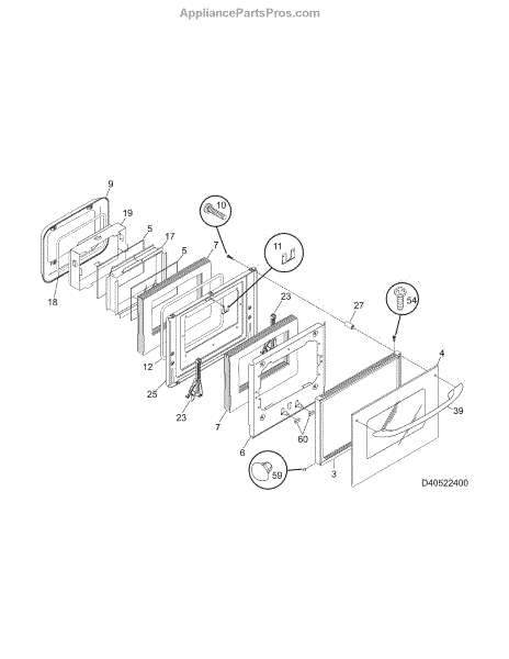 Replacement spacer for oven doors. Maintains proper door alignment and spacing. Replace if cracked, broken, or missing to ensure correct door fit.