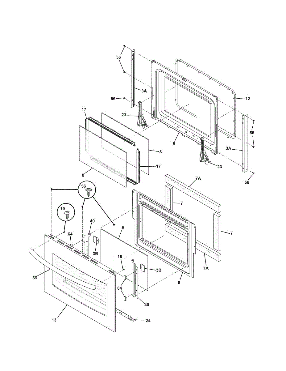 Inner door glass panel for range and wall oven doors. Replace if cracked, shattered, or slipped out of position. Installs between outer glass and oven cavity.