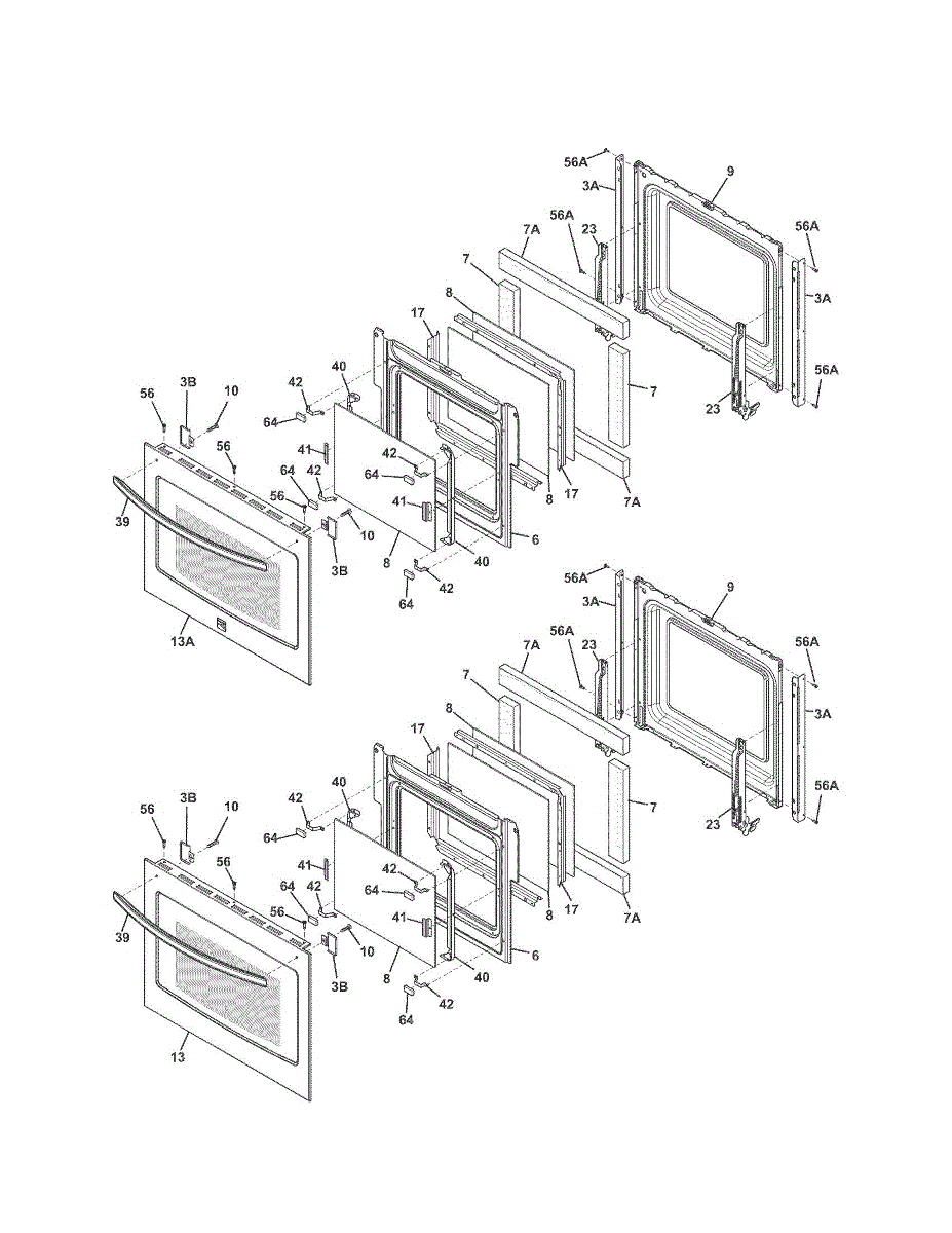 This door assembly replaces a damaged or dented appliance door to restore a clean exterior and proper closure. It provides the finished outer surface and mounting points needed for secure sealing and normal operation. What it does