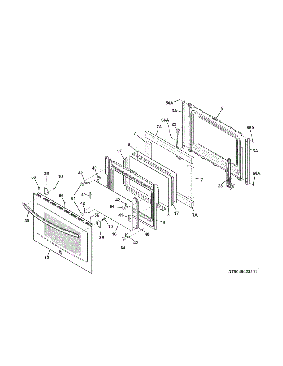 Replacement glass panel for the oven door. It restores a clear viewing window and helps maintain proper insulation when the original glass is cracked, shattered, or discolored.