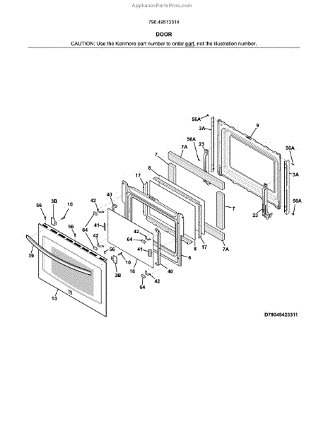 Parts for Kenmore 790.49513314 (79049513314, 790 49513314): Door Parts