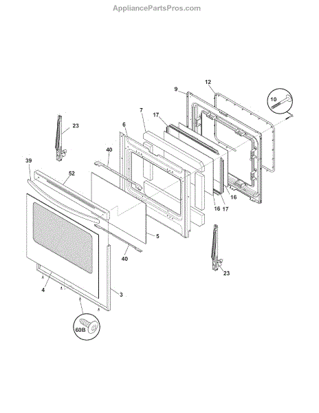 Replacement glass panel for the oven door. It restores a clear viewing window and helps maintain proper insulation when the original glass is cracked, shattered, or discolored.