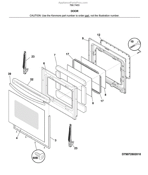This Door Trim Kit replaces the perimeter trim on the appliance door, restoring a clean, factory-finished look and secure fit of the door frame components. Use when the original trim is cracked, warped, missing, or discolored.