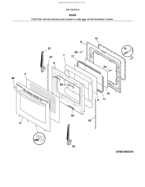 Parts for Kenmore 790.74233314 (79074233314, 790 74233314): Door Parts