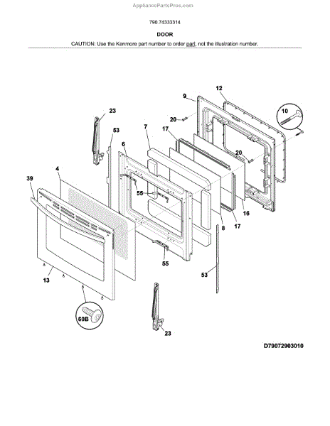 Parts for Kenmore 790.74333314 (79074333314, 790 74333314): Door Parts
