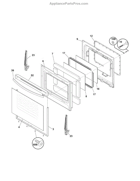 Restores the finished look around your range door perimeter. Replaces cracked, discolored, or rusted trim that frames the door and secures outer components.