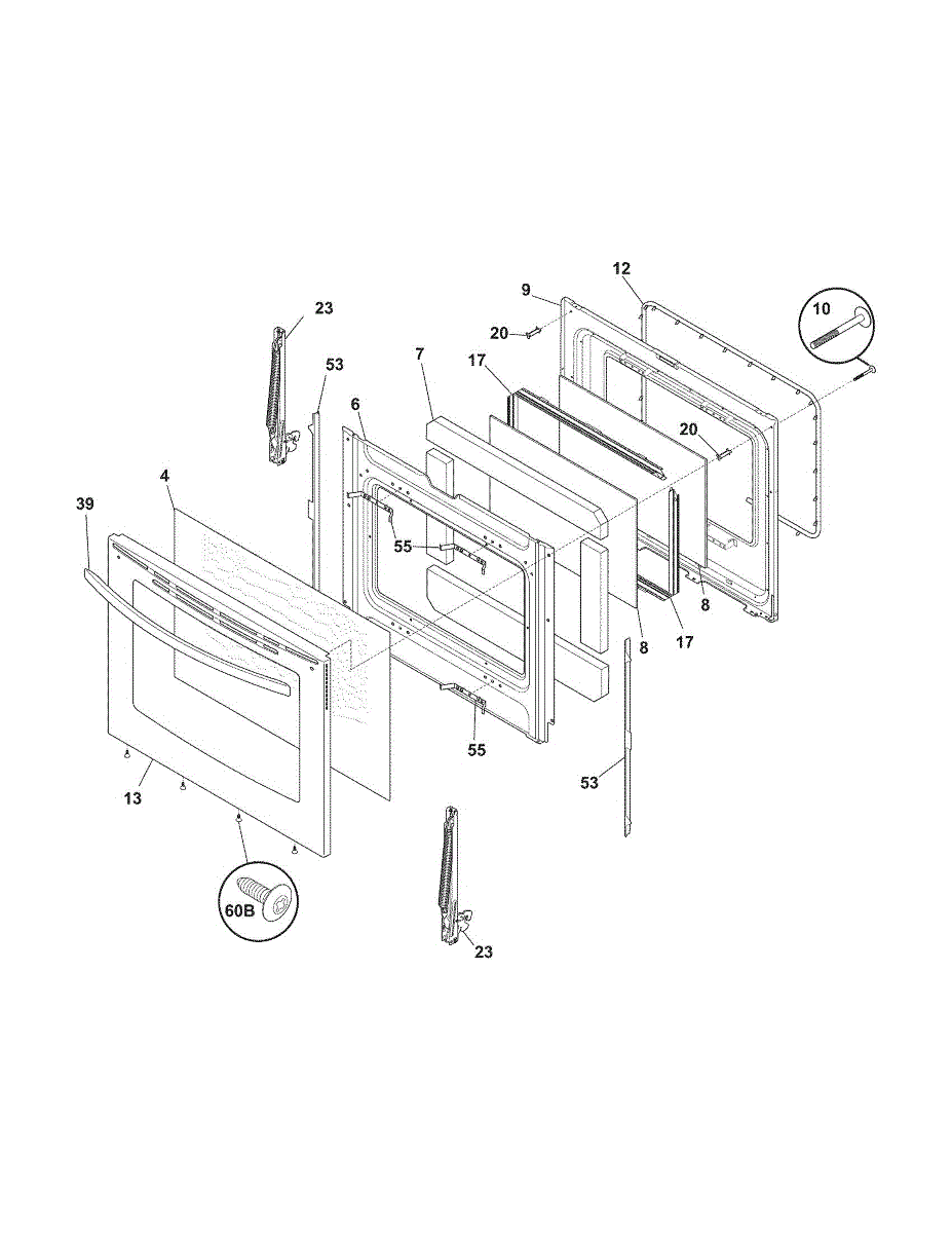 Inner door glass panel for range and wall oven doors. Replace if cracked, shattered, or slipped out of position. Installs between outer glass and oven cavity.