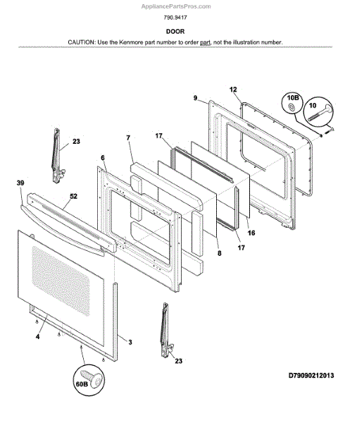 Parts for Kenmore 790.94179315 (79094179315, 790 94179315): Door Parts