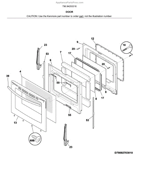 Parts for Kenmore 790.94203316 (79094203316, 790 94203316): Door Parts