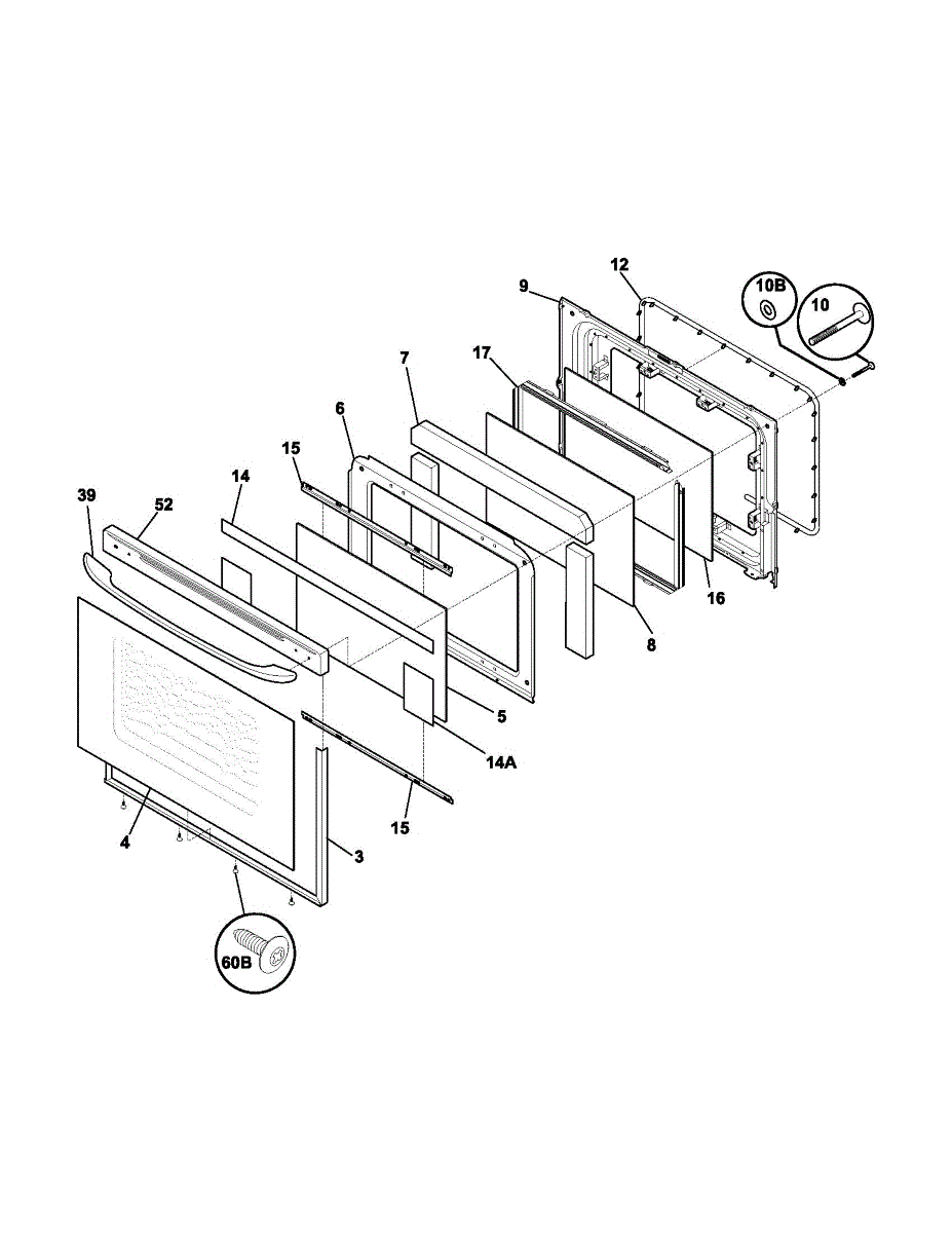 Inner door glass panel for range and wall oven doors. Replace if cracked, shattered, or slipped out of position. Installs between outer glass and oven cavity.
