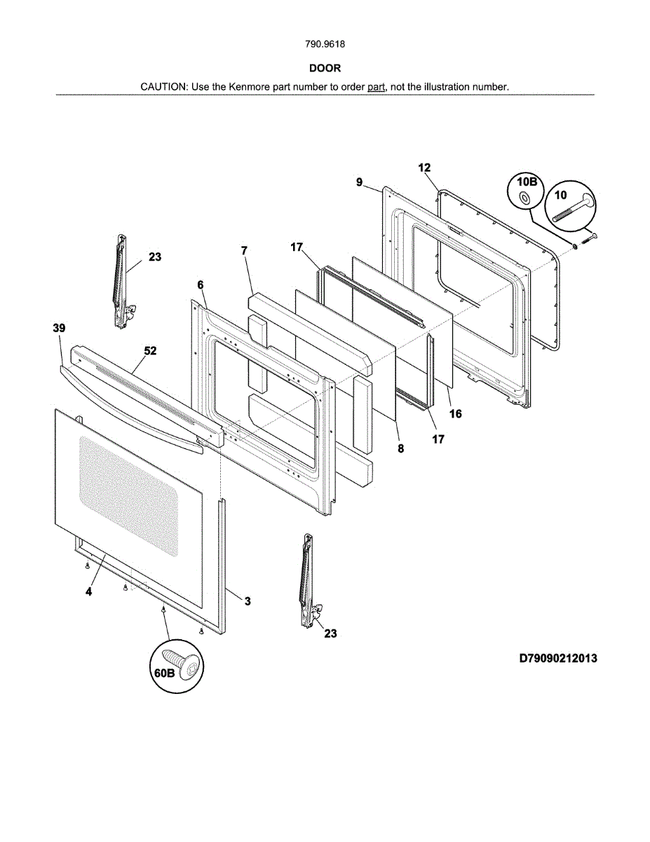 Parts for Kenmore 790.96189712 (79096189712, 790 96189712): Door Parts
