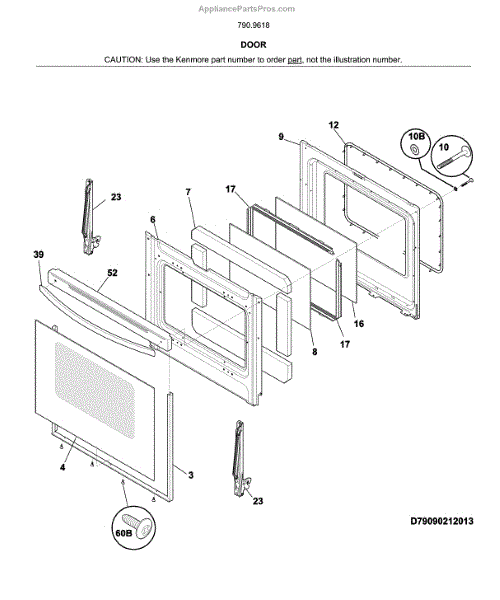 Parts for Kenmore 790.96189715 (79096189715, 790 96189715): Door Parts
