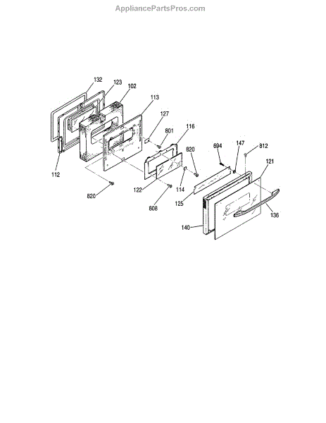 Parts for Kenmore 911.36665094 (91136665094, 911 36665094): Door Parts