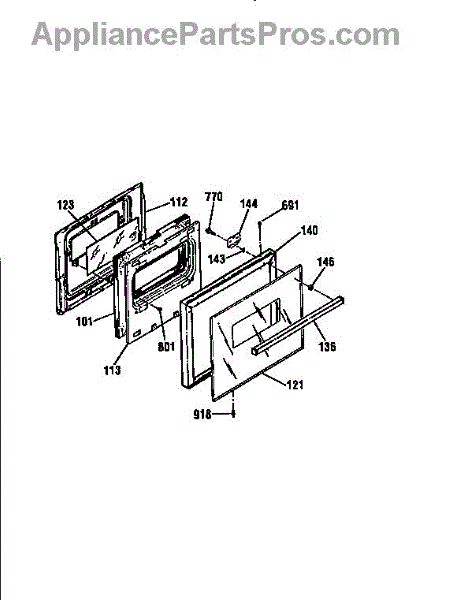 Parts for Kenmore 911.40169690 (91140169690, 911 40169690): Door Parts