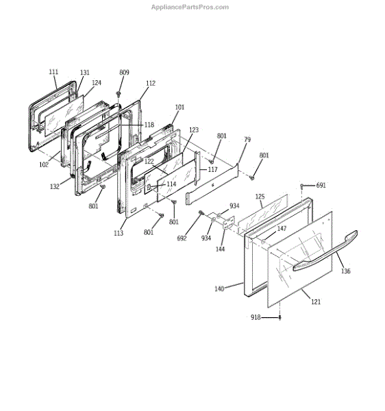 Parts for Kenmore 911.40495892 (91140495892, 911 40495892): Door Parts