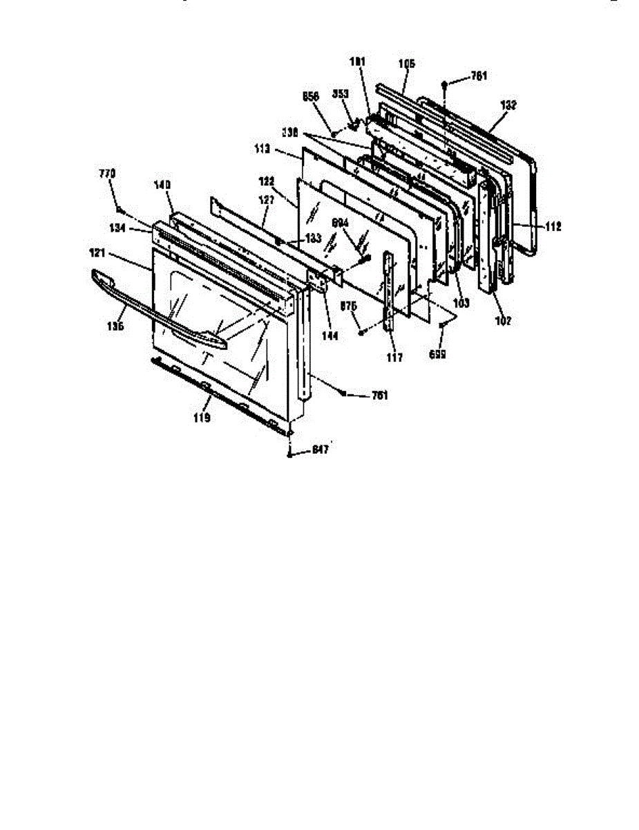 Inner oven door glass installs inside the door cavity behind the outer panel. Replace if shattered, cracked, or broken to restore viewing window function.
