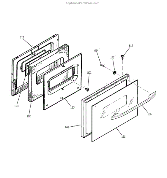 Hex washer head screw secures oven panels, brackets, and door handles. Replace missing, stripped, or damaged screws to eliminate looseness and rattling.