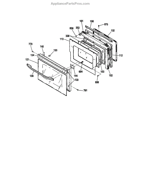 Oven door glass window pack for viewing food while cooking. Replaces cracked, shattered, or broken glass. Installs inside the oven door frame assembly.