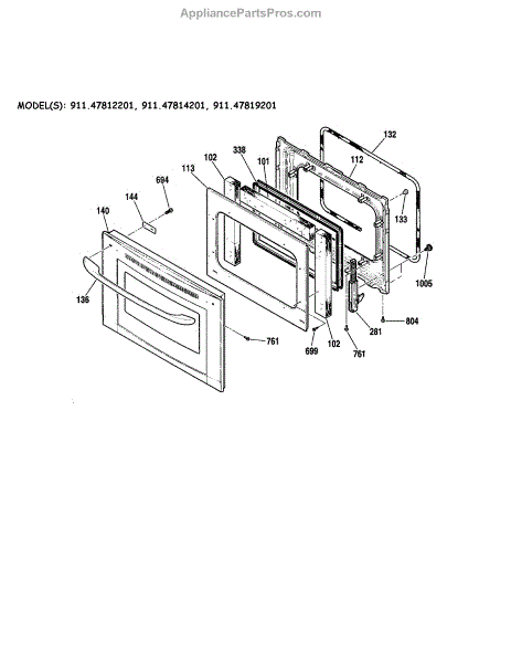 Replace cracked, broken, or shattered oven door window glass. This assembly includes the glass pane and securing brackets that install inside your range door.