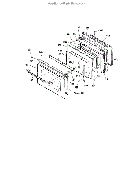 Oven door glass window pack for viewing food while cooking. Replaces cracked, shattered, or broken glass. Installs inside the oven door frame assembly.