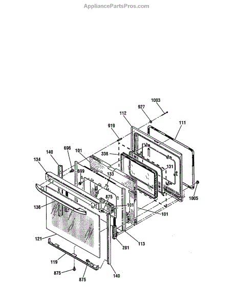 The Oven Door Window Pack Assembly is an OEM part for GE ovens. This assembly includes the glass window and necessary components to ensure a clear view into the oven while maintaining the internal temperature and providing insulation. The glass measures 19" x 12".