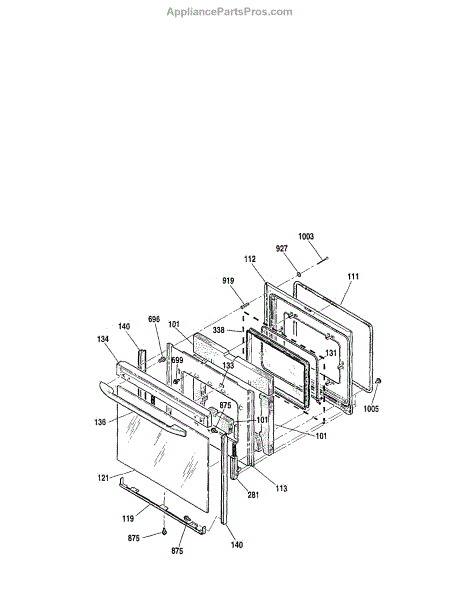 The Oven Door Window Pack Assembly is an OEM part for GE ovens. This assembly includes the glass window and necessary components to ensure a clear view into the oven while maintaining the internal temperature and providing insulation. The glass measures 19" x 12".