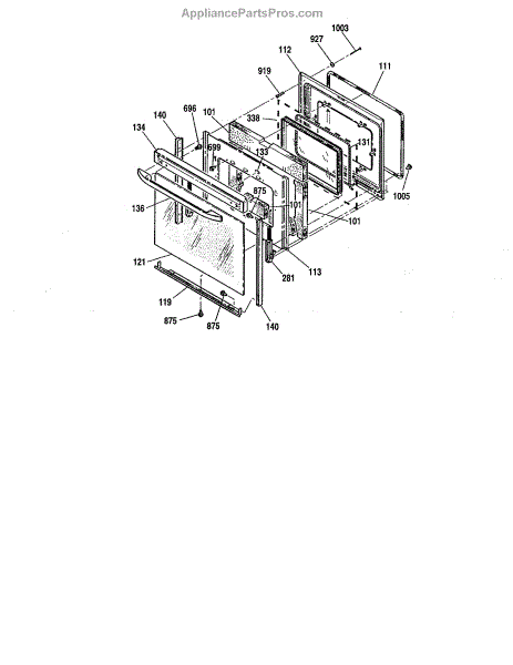 The Oven Door Window Pack Assembly is an OEM part for GE ovens. This assembly includes the glass window and necessary components to ensure a clear view into the oven while maintaining the internal temperature and providing insulation. The glass measures 19" x 12".