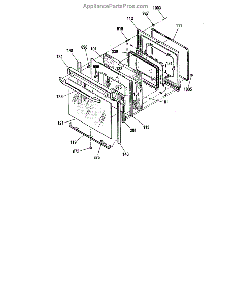 The Oven Door Window Pack Assembly is an OEM part for GE ovens. This assembly includes the glass window and necessary components to ensure a clear view into the oven while maintaining the internal temperature and providing insulation. The glass measures 19" x 12".