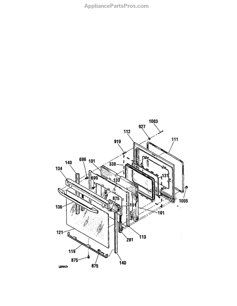 The Oven Door Window Pack Assembly is an OEM part for GE ovens. This assembly includes the glass window and necessary components to ensure a clear view into the oven while maintaining the internal temperature and providing insulation. The glass measures 19" x 12".