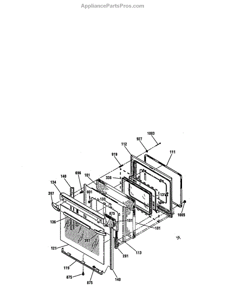 The Oven Door Window Pack Assembly is an OEM part for GE ovens. This assembly includes the glass window and necessary components to ensure a clear view into the oven while maintaining the internal temperature and providing insulation. The glass measures 19" x 12".