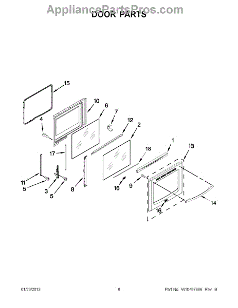This inner oven door liner replaces the damaged or warped inner panel that supports the oven door glass and helps contain heat inside the oven cavity. It restores a solid mounting surface for door glass and internal components. What it does: