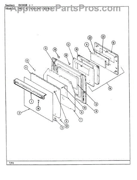 This spacer fits between the inner and outer oven door glass panels to help maintain the correct gap and alignment for safe operation. It replaces a missing or damaged spacer to restore proper door assembly and appearance. What it does: