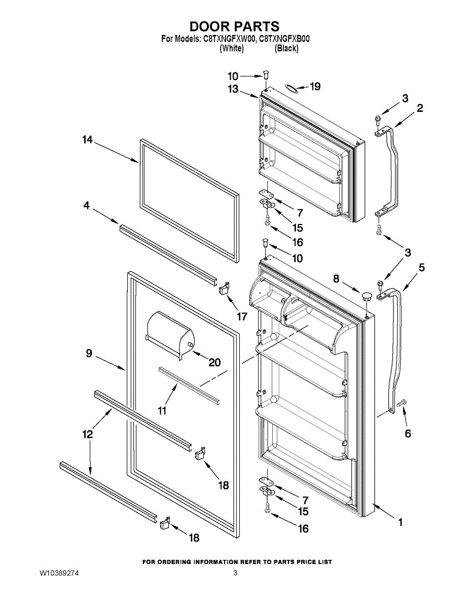 White refrigerator door handle for top-mount models. Replace your cracked, broken, or missing handle. Mounts with four screws for secure installation.