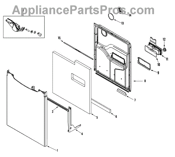 Inner door panel for dishwashers. Covers the interior door frame and provides structural support. Replace if cracked, warped, or damaged from wear.