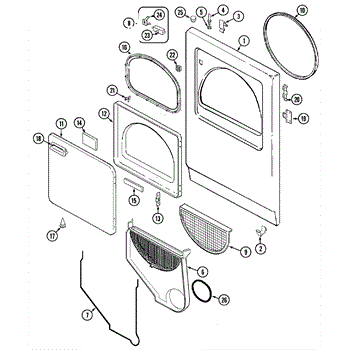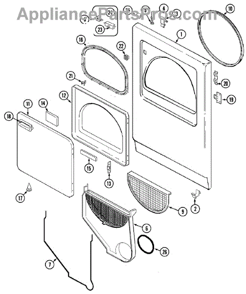 Traps lint and debris during drying to prevent vent clogs and maintain airflow. Replace when damaged, torn, or has holes. Verify fit with your model.