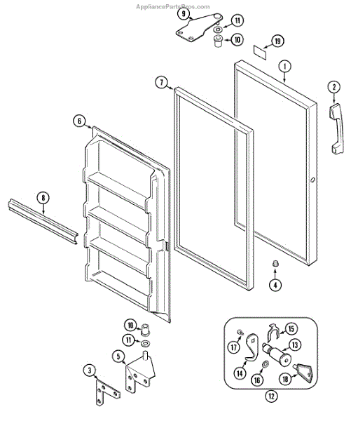 This bottom hinge secures and guides the refrigerator/freezer door at the lower pivot, restoring proper door alignment and smooth opening/closing. Durable molded construction matches the original white finish for a clean factory look. What it does: