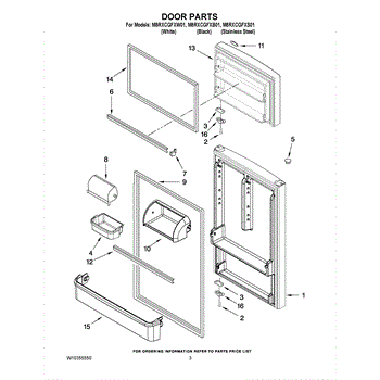 The Door Shelf Bin is an OEM part for Whirlpool refrigerators. It provides organized storage on the refrigerator door, allowing quick access to frequently used items like eggs, butter, or condiments.