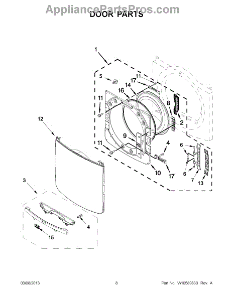 The Inner Door is an OEM part for Whirlpool dryers. It forms the inner layer of the dryer door, providing insulation and protection for the drum and other internal parts.