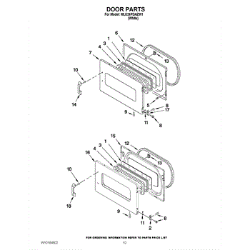 This factory hinge supports and pivots the appliance door so it opens smoothly and closes square to the cabinet. Replacing a worn or bent hinge restores proper alignment, sealing, and overall door feel.