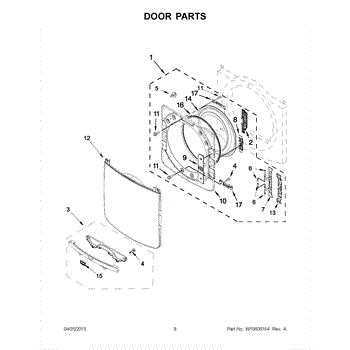 The Inner Door is an OEM part for Whirlpool dryers. It forms the inner layer of the dryer door, providing insulation and protection for the drum and other internal parts.