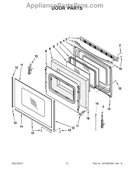 The Door Trim is an OEM replacement part for Whirlpool ranges. It covers the outer edge of the oven door, protecting it from wear and dust while retaining heat and improving aesthetics.